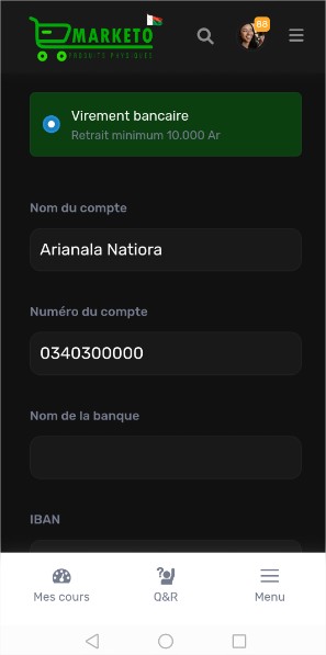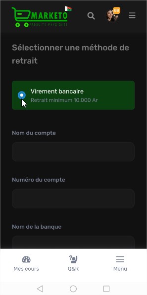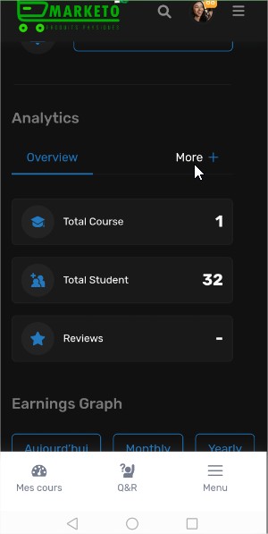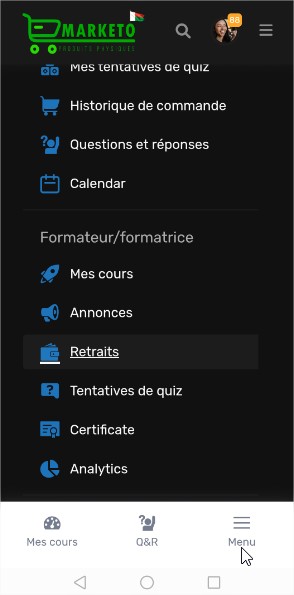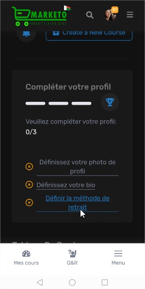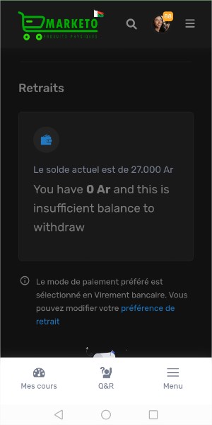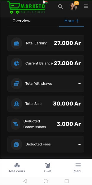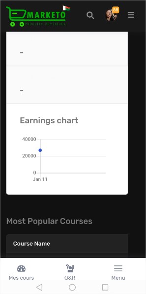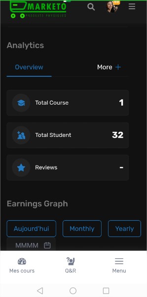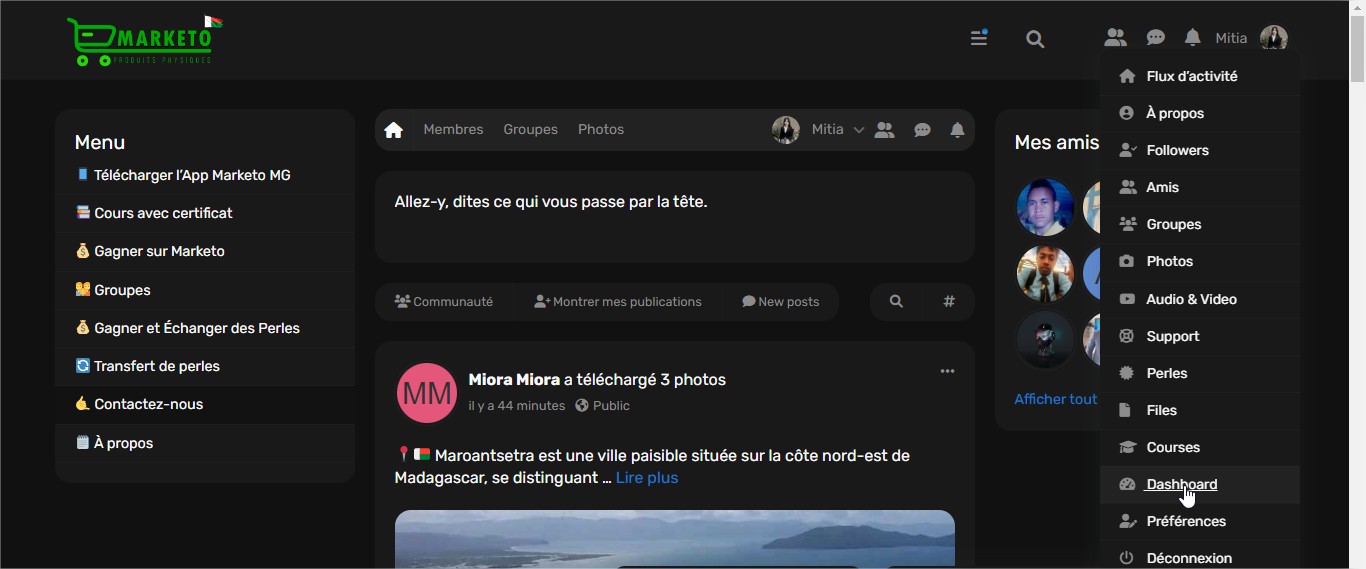 Bienvenue sur Marketo MG, le réseau social et la place de marché de produits physiques à Madagascar, ainsi que la plateforme dédiée à la gestion et à la promotion de vos formations en ligne. Grâce à un tableau de bord intuitif et des outils analytiques avancés, vous pouvez suivre vos performances, gérer vos formations, et maximiser vos revenus. Découvrez ici comment tirer le meilleur parti de Marketo MG pour faire de vos formations une source de revenus fiable et durable.