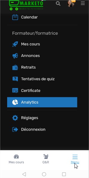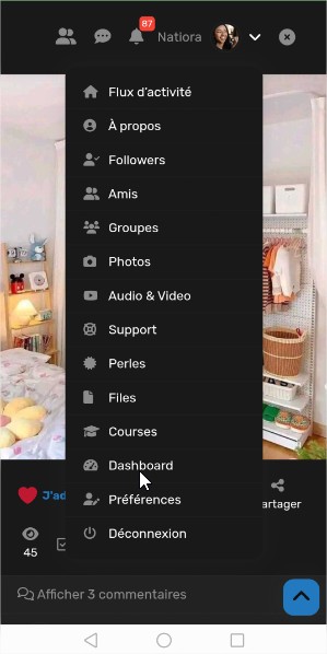 - Depuis un smartphone : Cliquez sur votre photo de profil, puis sur le menu déroulant.