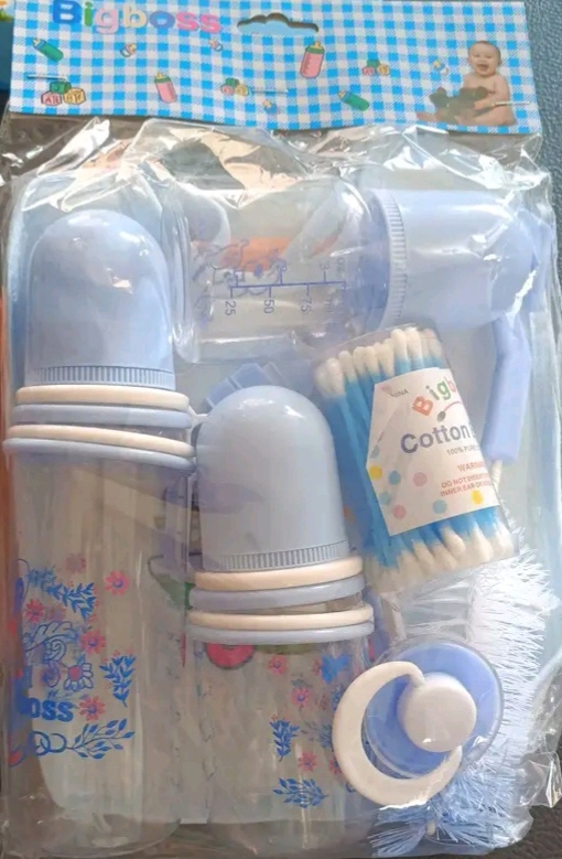 Kit biberon complet en verre : 3 biberons , bavoir, coton tige, pince, outil pour laver les biberons