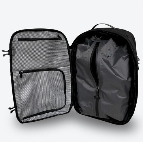 Le sac à dos de voyage AIRBAG est doté d’un système de mise sous vide intégré qui réduit le volume de vos affaires, augmentant ainsi l’espace de rangement.